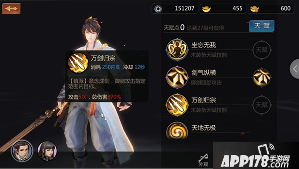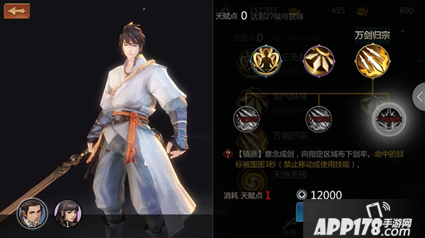 万剑归宗:【镇派】意念成剑,御剑攻击指定范围内目标。这个技能游戏里面体验最好,也不愧为镇派技能。