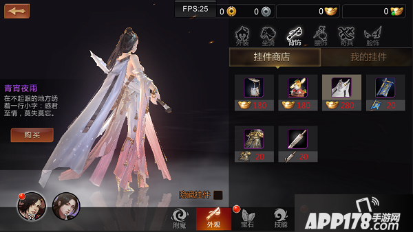 《剑侠世界》手游目前开放了6个部分的外观,分别为外装,坐骑,背饰,腰饰,奇兵,脸饰,大家只要完成主线任务,进入到临安城就可以直接购买。染色系统则需要通关第一章【寻找线索】之后才会开启!