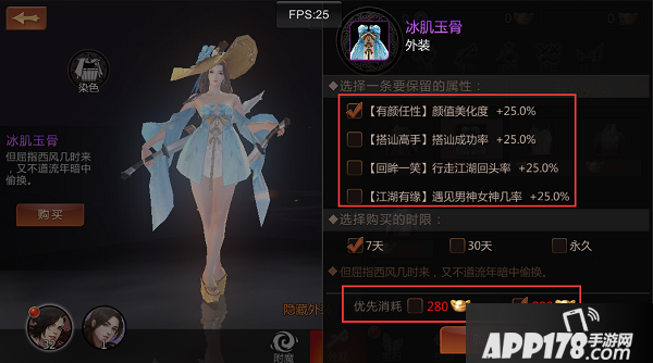 大家可以在外装商店去购买任意的外装,选中任意外装之后,点击左边的购买,即弹出了购买界面,大家可以根据喜好,来选择外装属性和外装时间,在购买的时候大家可以优先选中使用绑定元宝购买。