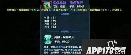 秘籍效果:提供风卷残云的伤害威力,减少风卷残云的冷却时间,对风卷残云击中的目标,造成致残,并且降低其全系抗性。