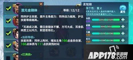 混元金刚体:增加主角金系伤害,体质与抗致残时间。(孟知秋)