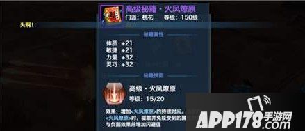 3、高级秘籍·火凤燎原。效果:增加火凤燎原的持续时间。当使用火凤燎原时,驱散并免疫受到的属性效果与负面效果并增加闪避值。