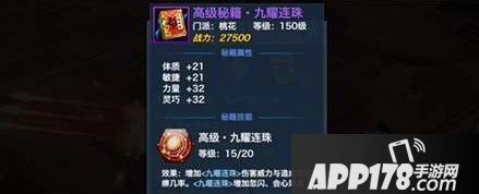 4、高级秘籍·九耀连珠。效果:增加九耀连珠伤害威力与造成的麻痹几率。九耀连珠增加会心和忽闪效果。