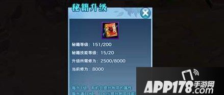 当秘籍进阶为高级后,其等级上限变为200级。各位少侠就需要通过提升秘籍等级来实现战力的飞跃。秘籍升级只需要修为值,但需求量惊人。比如从150到160每级需要2500修为值,从160到170每级需要3000修为值,从170到180每级需要3500修为值,从180到190每级需要4000修为值,从190到200每级需要4500修为值。所幸修为值除了通过在线时间积累,还可以通过家族珍宝坊兑换或通过拍卖、摆摊等方式获取。