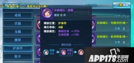 中级魂石·曲霞,魂石等级:紫色4级,基础生命+12%,生命回复+140