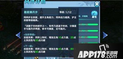 踏星摘月步:增加主角力量+土系抗性+闪避(金翅鹏皇、祝子虚、纳兰潜凛、赵云)