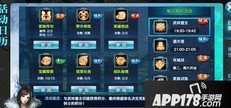 武林盟主活动会在每天的12:30、19:30两个时间开启,届时会随机出现一位武林盟主等候少侠们的挑战。少侠们以家族为集体挑战武林盟主,根据对武林盟主造成的伤害换算成积分。同时,击败非好友、非家族成员侠士即可抢夺一定比例的积分。最后根据家族积分排名结算,奖励进行家族拍卖。武林盟主的排名在一定程度上也是一个家族力量的排名。排名靠前就意味着家族活跃人数多,凝聚更强。所以武林盟主第一名是无上的荣耀。