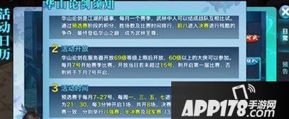 大于60级的少侠可以参与华山论剑的精彩比赛,每月7日-27日举行预算赛,每周一、三、五、七进行,21:30开启后每人每天最多可以参与6场比赛。该届华山论剑采用带同伴3V3的模式,战队的每个成员均需编号,然后按照编号1对1的方式单独作战。编号的随机性决定了对战门派的随机性,也成为了个人作战的绝佳舞台。