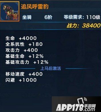 追风呼雷豹,110级新坐骑,需玩家在达到110级后方可装备和使用,以下是具体的追风呼雷豹属性:
