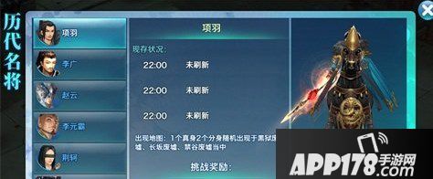 新名将项羽,其存在于80级名将地图中,即赵云、李广、李元霸地图,并在出现时随机一真身两分身各分布于三大地图,玩家在击杀后能够获取到丰盛的奖励。但一般而言,由于真身分身难以分辨,且真身产出更多,因而玩家可根据情况作出适应性的改变,从而获取最大的便利。