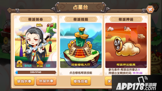 占星台是一个帮派的最为核心的位置,分为帮派供奉、帮派技能和帮派押运三个区域。据说帮派供奉里的神像有求必应,小编已经到处求神拜佛祈姻缘无果,我们先去膜拜一下帮派供奉的神像吧!