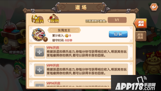 小时工哪有出头日,被雇佣才有零花钱!你派遣到道场的英雄,帮派其他成员可以支付铜钱,雇佣他为己所用。只要雇佣了英雄,无论战斗结果如何,佣金不会退还。是不是有种我的地盘我做主的爽感呢!