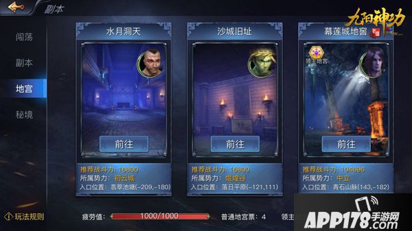 在《九阳神功:起源》里,地宫共有三个,分别是初云城势力所属的水月洞天,焜煌谷势力所属的沙城旧址,以及中立的幕莲城地窖。三大地宫场景风格各异,既有阴森诡异的地下秘道,也有战火熊熊的兵家战场。其中地宫分为普通地宫和领主地宫,领主地宫需要消耗地宫票方可进入,在领地战期间无法进入领主地宫。宝贵的领主地宫票,可以通过领地战、拍卖行等渠道获取,领主地宫获得的收益也是普通地宫的数倍之多。