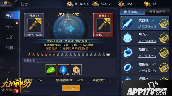 由蜗牛游戏倾力打造的主机工艺大作《九阳神功:起源》近日已在安卓平台首测,双平台不删档测试也将在4月7日震撼降临。其实经过一段时间的升级,玩家在《九阳神功:起源》的世界里跌跌撞撞应该也能达到220级的高度,战力也能提升到十五万左右。不过想要再继续攀登,就需要注意后续对装备和人物的强化培养,今天我们就来看看要如何在游戏中期进一步地提升自身的实力。