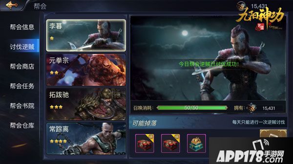 在帮会中,玩家不仅可以获得经验、装备等诸多资源,还能得到同帮派小伙伴的支持与保护。帮会成员每日进行帮派任务即可获得贡献值,贡献值可以在帮会商店中换取物资,也可以在帮会书院中直接换取属性加成!帮派成员的贡献是帮会自身成长的重要途径。当帮会物资达到一定数值时,帮主可以选择讨伐逆贼,杀死逆贼可以获得重要物资“龙魂”和稀有装备。