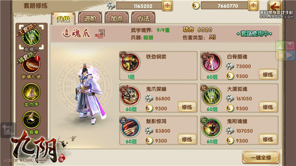 追魂爪招招索命,远攻近战样样精通,可近身爪风袭人,也可以远攻飞爪勾魂,整套爪法共分为六招。