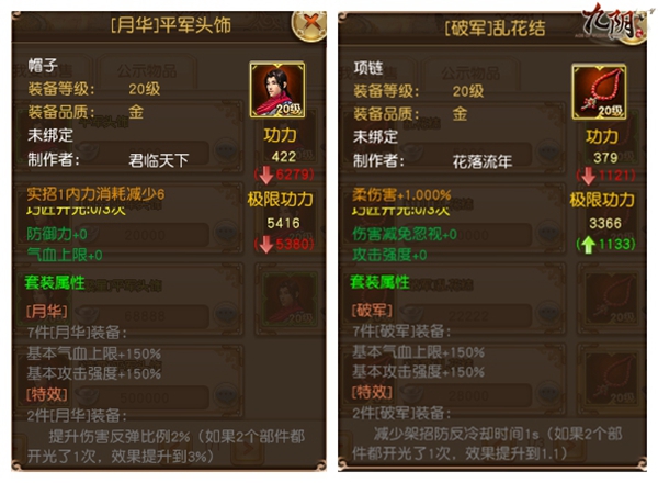 月华套装的效果可以提升伤害反弹比例,比较适用于学习了控制效果较弱或具有续航效果武学的玩家使用。