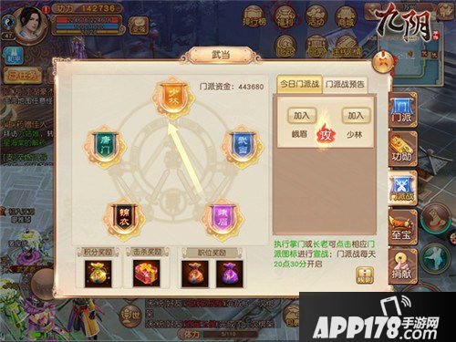 《九阴》手游“一代宗师”版本门派战玩法,不但可以让玩家亲身参战体验多人战斗的畅快打斗,更可以通过门派战玩法来收获海量道具,强化自身的属性,收集所需的套路、武学残卷,对门派战的相关内容了解的越全面,就有更多可能获得古谱包、冶炼石等海量奖励。