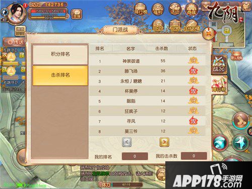 门派战的人数众多,如果贸然冲入敌方的人群,很可能瞬间被敌人直接击杀,连出招的机会都没有。这时玩家要现在外围攻击落单的敌方玩家,由于门派战血量扩大四倍,所以很难被单个玩家击杀,将怒气尽快继续到可以释放怒招的程度,玩家选用的武学套路如有红霸体的效果,可以释放红霸体招式进入敌阵输出,没红霸体的情况下在怒招可以释放时进入敌阵迅速释放,一般会击杀3-5个敌方玩家,循环往复,排名击杀榜前十自然是板上钉钉。