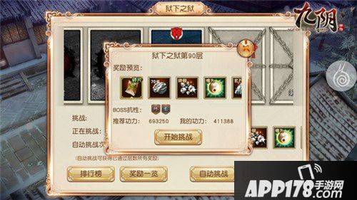 《九阴》手游在玩家达到70级后,即可以挑战狱下之狱第90层,将狱下之狱打到当前的最高层数,将获得大量的玄石、修为、碎银的资源奖励,同时还可以获得各类套路、内功残卷。对于使用剑类和暗器类的玩家来说,90层有几率掉落的长生诀更是众多玩家追求的内功残卷。