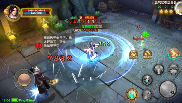 BOSS特点:攻击特效繁杂,共计4种分别为眩晕、击倒、减速、削减内力。格挡回血,连击无法躲避,同时伤害较高,限时挑战。
