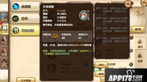 华山剑法作为大众选择,实际效果还是非常不错的,重点是残卷价格便宜,容易收集。因此,对套路进行进阶也是势在必行的,那么技能加点就是玩家们所面临的一个难题了。那么,应该怎么加点才比较合理呢?下面小编就跟大家一起分析一下,之后大家再做选择吧!