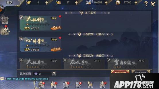 作为武侠类手游吗《九阴真经3D》的角色,武学,加工,制造,修炼,门派,帮会,江湖,交易,称号系统一样不落,这很武侠江湖。其中小编觉得武学系统可以拿出来讲一下,武学系统,随着等级的提升,随着不断收集武学残卷,能够解锁更高界别的武学套路,这些武学套路可以在战斗中自由切换,战斗上阵时,可最多佩带6种武学套路。另外武学残卷可通过日常玩法或者购买系统获得,这残卷收集还是有一定门槛的。