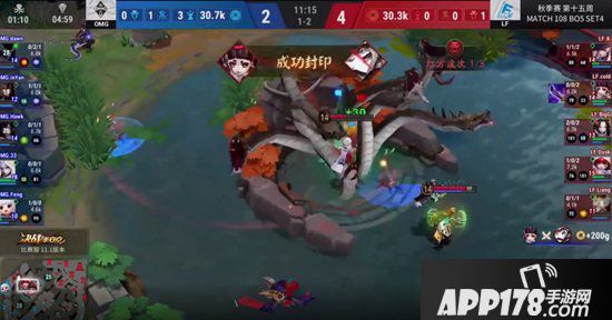 第二小局开场五分钟LF入侵敌方野区失误,被OMG打出了小劣局面,随后在inYan山风的节奏掌控下,OMG连拿两条大蛇,扳回一城。