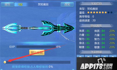 在飞宠界面,通过滑动下方的滑块可以设置飞宠获得经验的占比,在玩家获得经验时会按照此处所设置的百分比分配经验给飞宠。