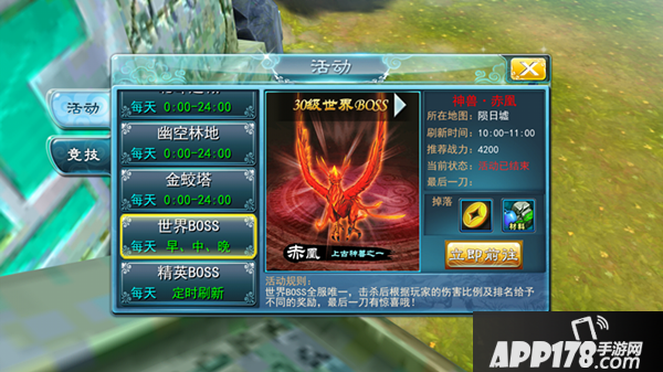 世界Boss活动每日固定开放,并在固定地点刷新全服世界Boss。到达该场景的玩家均可参与攻击世界Boss。在世界BOSS死亡后,根据伤害类别的排名,发放伤害排名奖励,最后一刀完成击杀的玩家还会有惊喜奖励哦!