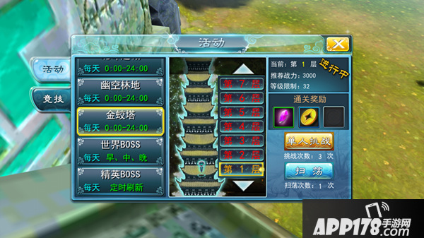 金蛟塔是一个单人活动副本,在金蛟塔内玩家将从第1层开始挑战,成功打通后可继续往上挑战,共计100层,每打通一层即可获得层数奖励。打过的层数越高,奖励就越丰厚哦!