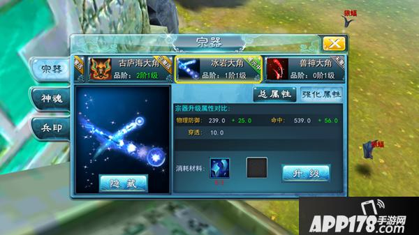 宗器可以通过消耗特定物品来提升等级,等级越高所带来的属性加成也就越高;宗器在整数级时还可进阶,模型外观效果也会变得更加炫酷,小伙伴们快来试试把!