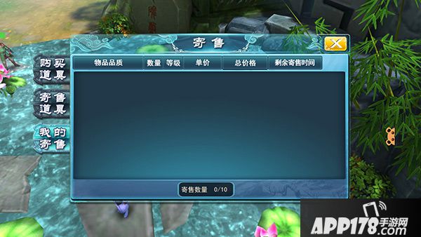 寄售列表是为了方便玩家随时查看自己寄售物品信息的选项,在列表中显示了玩家本人已经寄售的在售道具列表,同时寄售数量上限为10个。物品列表分别展示出物品品质、数量、等级、单价、总价格、剩余寄售时间等类别信息,这些类别信息可以通过点击来进行升序或降序排列。