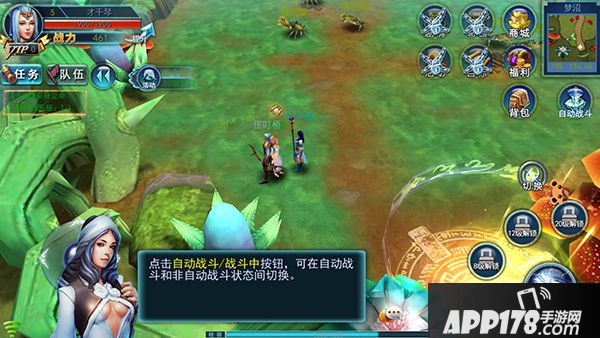 当玩家到达5级的时候,游戏内会给予玩家关于自动战斗的指引,即玩家点击自动战斗战斗中按钮,可在自动战斗和非自动战斗状态间切换。自动战斗按钮在游戏右上角小地图位置的正下方,当玩家需要野外打怪,或者在活动副本中的时候,都可以选择点击该按钮切换成“战斗中”状态,这样你的角色就可以自动进行战斗了。
