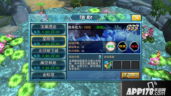 为满足玩家对游戏材料和经验的日常需求,目前游戏设立了星陨海(宝石掉落副本)、宝藏遗迹(金钱掉落副本)、北邙地下城(经验副本)、幽林空地(宠物材料副本)共四个材料及经验类活动副本。这些副本各自拥有不同的场景及怪物类型,因此需要玩家采取不同的策略去完成副本。当然,战力足够的童鞋们完全可以使用自动战斗功能帮你轻松完成任务~
