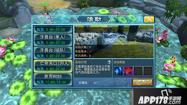 亡命关口是一个30人混战PK战场,在一段时间内玩家们在战场上互相厮杀,倒计时结束后根据击杀情况给予不同的奖励。