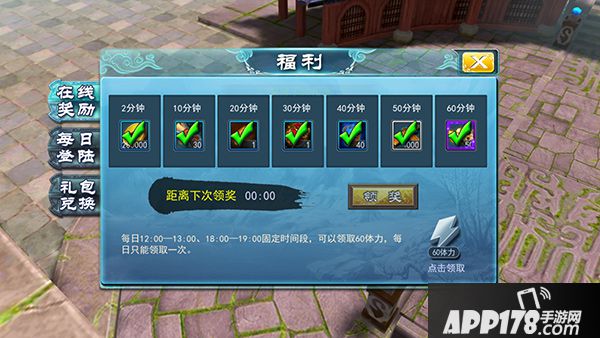 福利,顾名思义,就是官方送出的各种礼包,有在线奖励和每日登陆,包含材料、木材、扫荡券和元宝等大量资源,这些基本就是轻而易举便可以获得,在游戏过程中记得直接去领取就OK。每天12-13点和18-19点两个固定时段还可以分别领取60体力。