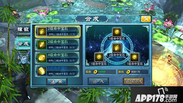 消耗一定的金株,可以将三个相同的低等级宝石合成相应一个更高一级的宝石,例如:三个1级命中宝石消耗1万金株可以合成一个2级命中宝石,因此当你的宝石有富余的时候,可以选择去尝试合成宝石。