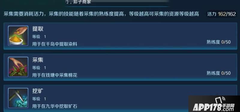 ④时装制作:采集,九华有打造武器的,其他图有其他材料。活力够了记得去啊。需要熟练度的。