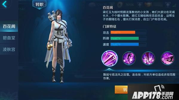 百花阁和碧血堂是《剑指云天》目前开放的两个职业,各有战斗特色。百花阁剑法轻盈、内外兼修,治疗效果也异常强大;碧血堂内功深厚,拥有极强的防御力。