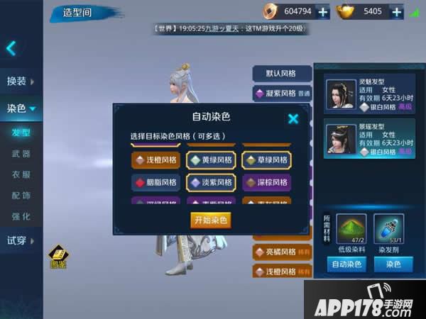 染色有自动染色和染色选项,自动染色可多选但不能选当前已拥有的颜色,点击自动染色开始直到染出选定颜色中的其中一个颜色才会停止,可手动停止,染色的话是随机染一个颜色的,完全看脸。