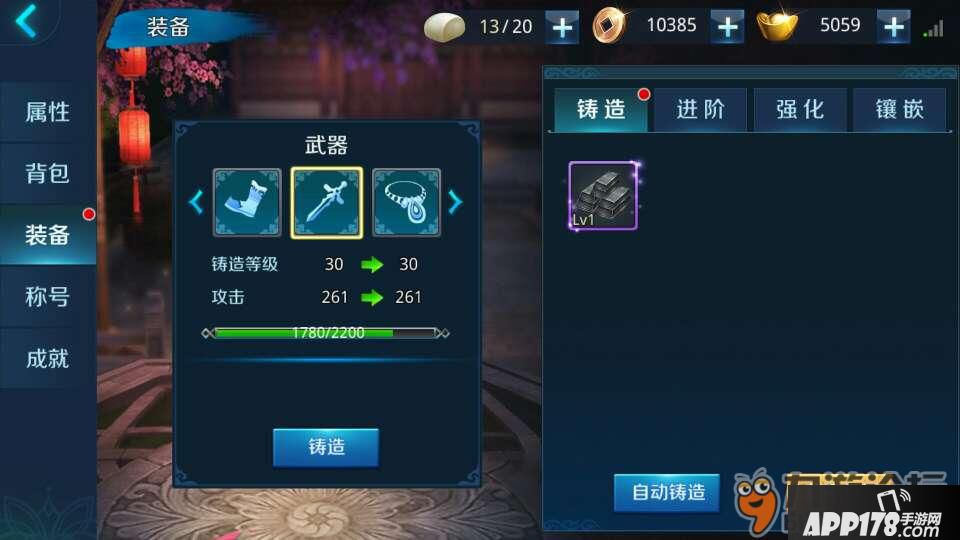 这时我们得适当提升战力和赚取馒头,提升战力可以通过装备铸造(副本爆的装备不够,可以在商城买铸造石),也可以通过进阶装备,同时还可以通过技能加点提高战力!