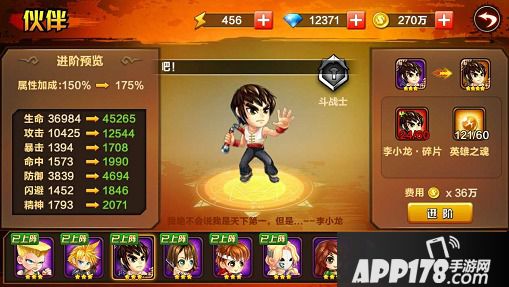 伙伴进阶可以提升伙伴星级,需要消耗伙伴碎片和英雄之魂,伙伴碎片可以通过英雄本获得,英雄之魂可以通过英雄本、伙伴招募和商店购买获得