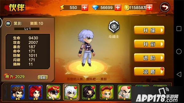 小伙伴分为神将、攻击型、坦克型、辅助型4类;