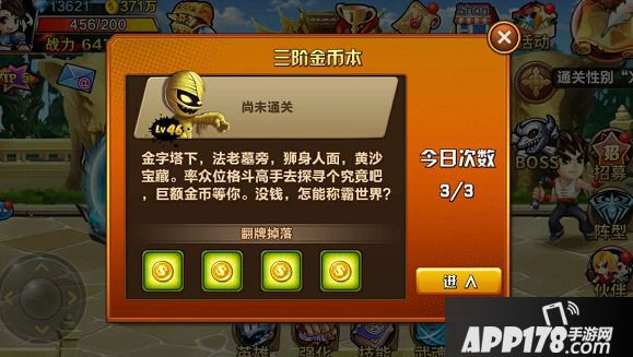 获取金币的最佳途径,可不要浪费机会哦!打到泰国地图才能解锁金币副本哦!