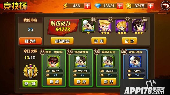 进行10次竞技场,获取更高排名,可以领取更丰盛的奖励。