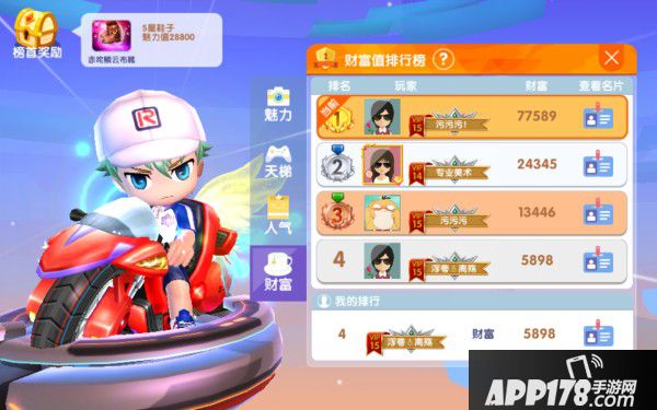 点赞他人名片或者赠送他人物品都可增加相应人气值。累积的人气值越高排名越靠前。