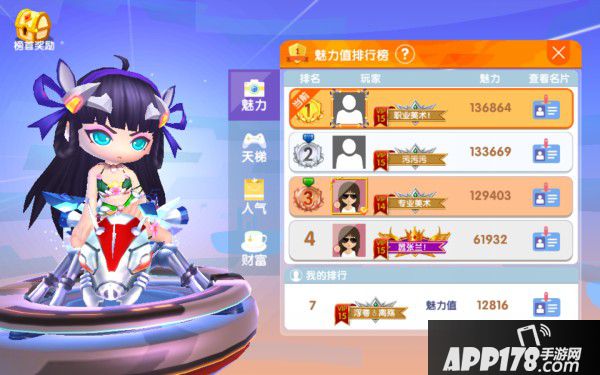商城出手的时装与饰品都有相应的魅力值,购买并穿戴后会根据玩家当前身上的总魅力值进行排名,魅力值越高排名越靠前。