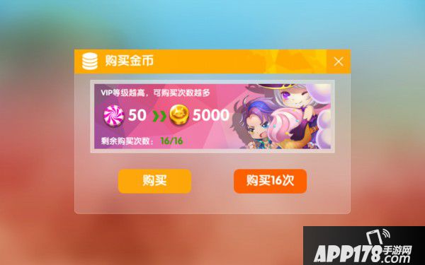 当然还有最简单粗暴的方式:用糖果币购买!点击金币旁的加号按钮就可以用糖果币来兑换金币了。当然也可以购买商城中的金币大礼包,折扣更大哦~