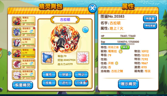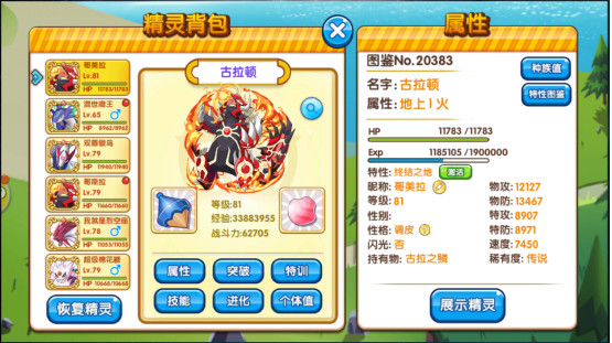 这个是我的钉子手调皮的古拉顿(紫色)为什么我要这个性格呢?其实是我特意的洗出来的,我的目的就是+物攻带火焰拳,不减特攻可以带阳光烈焰,然后钉子+睡觉打击面也还凑活除了裂空座跟自己打不了自己其他的还好。(最主要的是我为以后着想妖精系+电系一出裂空与海皇牙是必会遭受打击而古拉顿永远也不会)PVP心得:我是首发岩钉古拉顿如果对面是超梦首发我一定火焰拳撸之,因为超梦见到古拉顿会有4种可能1.挑拨2.毒3.换人4.攻击所以说见到超梦火焰拳基本不会吃亏。即使被毒上了要没碰见毒牧y也非常好打。如果首发是暴鲤龙,班吉拉直接钉子不废话,白鬼的话就该换人了。个人感觉古拉首发还是不错的,对了还有一点就是一定要小心返拳跟有没有大天气,有大天气可不能瞎用眼光烈焰,一定要小心使用阳光烈焰打击面还是非常足的,打河马、巨沼怪、班吉拉、红龙都是不错的单天气的海皇牙也可以打。后期想把阳光烈焰换个打雷或者10万伏特专门联攻海皇牙也是不错的。